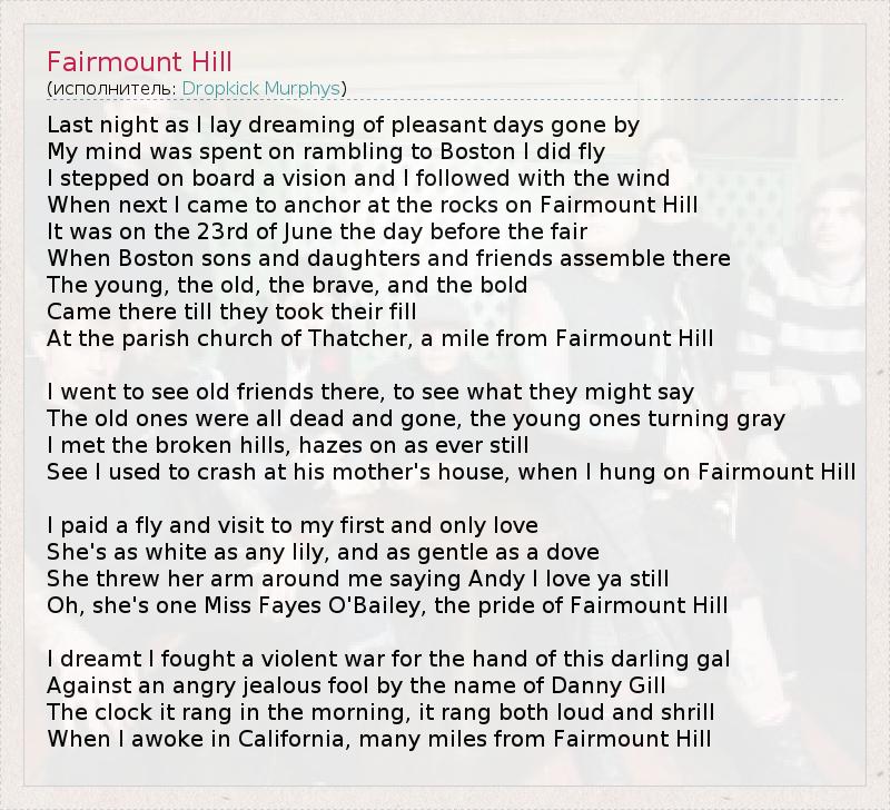 А как ты думаешь, о чем песня "Fairmount Hill" ?