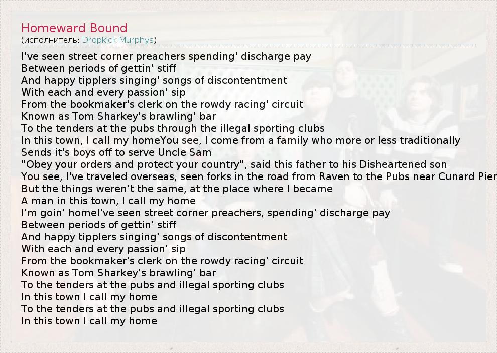 А как ты думаешь, о чем песня "Homeward Bound" ?