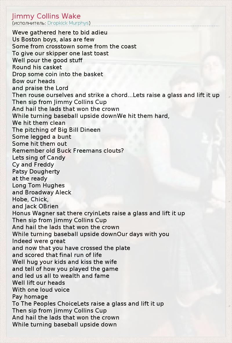 А как ты думаешь, о чем песня "Jimmy Collins Wake" ?