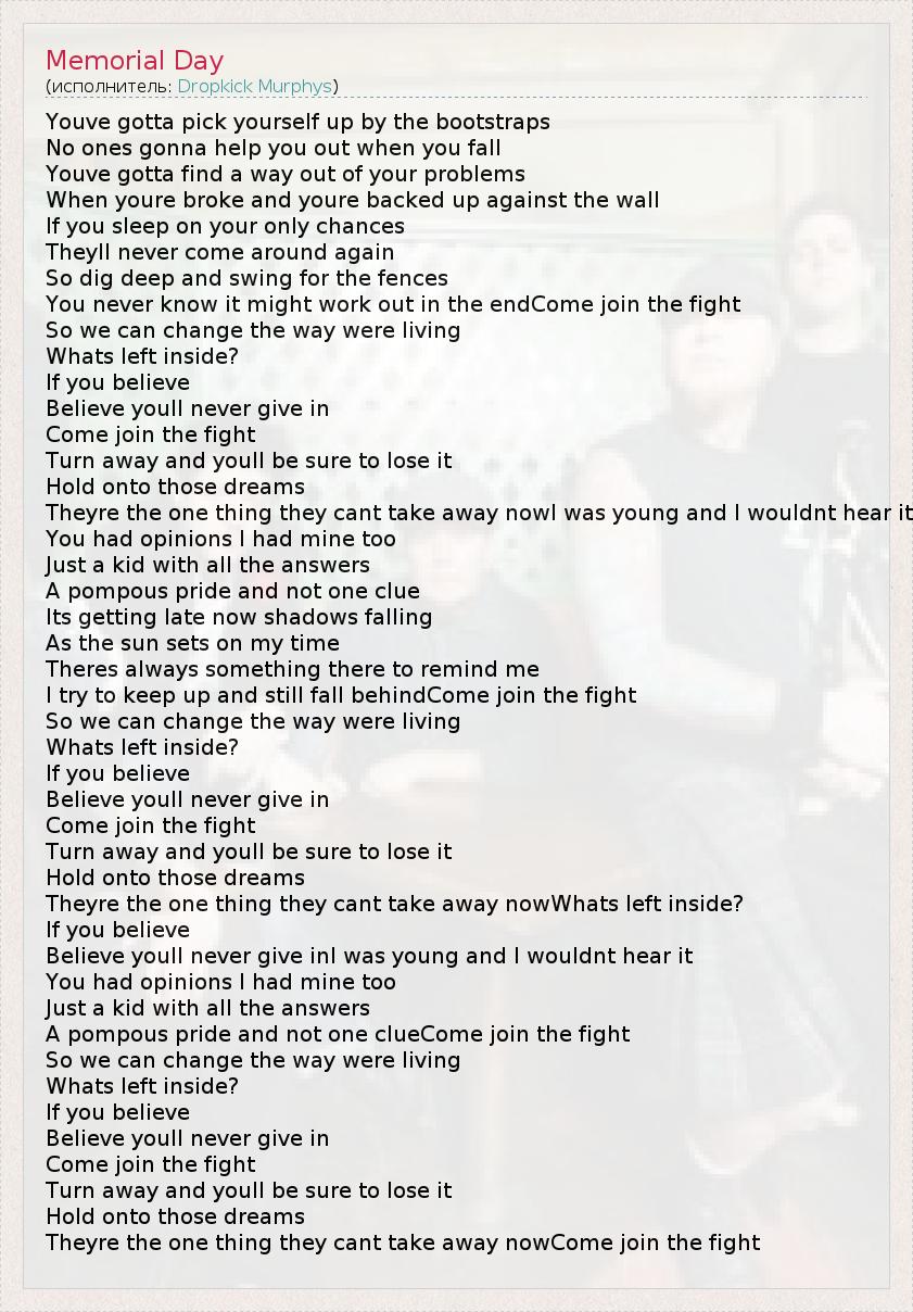 А как ты думаешь, о чем песня "Memorial Day" ?