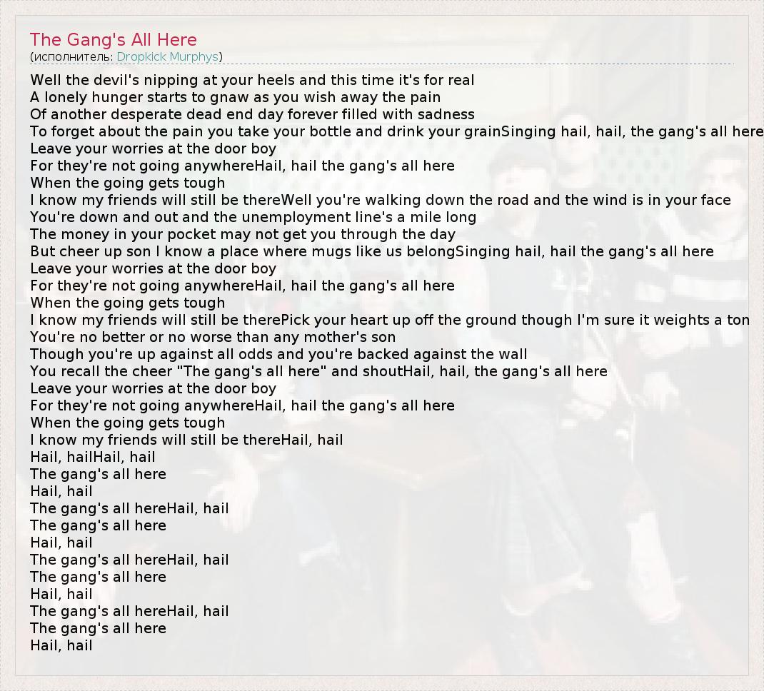 А как ты думаешь, о чем песня "The Gang's All Here" ?