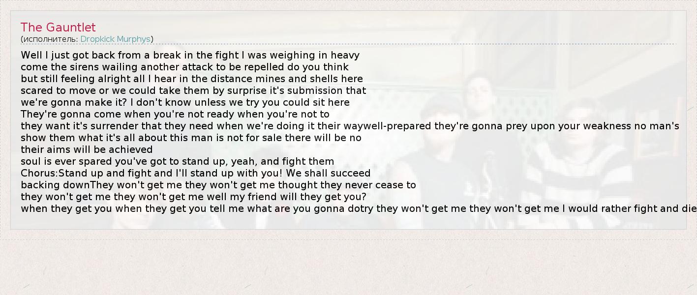 А как ты думаешь, о чем песня "The Gauntlet" ?
