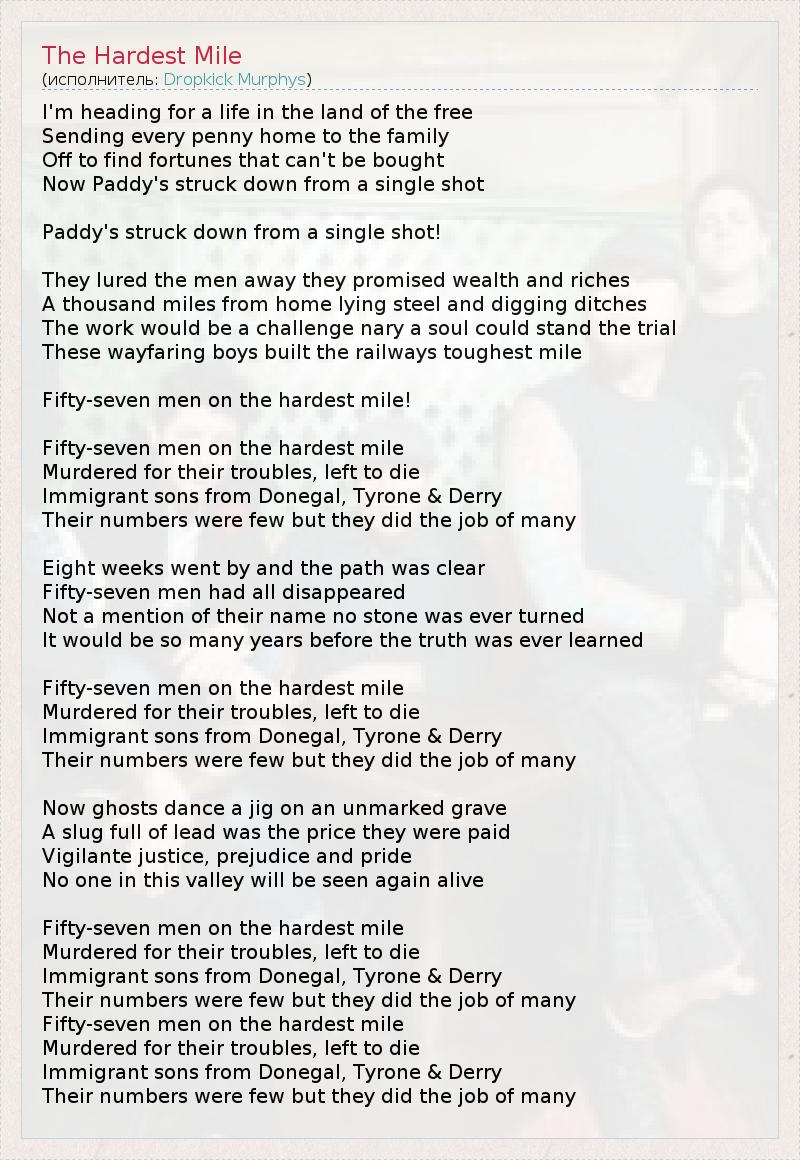 А как ты думаешь, о чем песня "The Hardest Mile" ?