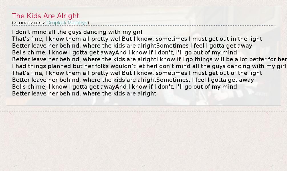 А как ты думаешь, о чем песня "The Kids Are Alright" ?