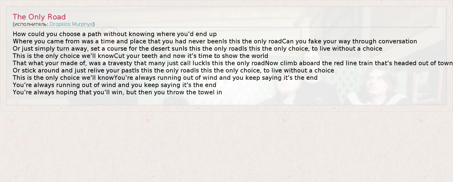 А как ты думаешь, о чем песня "The Only Road" ?