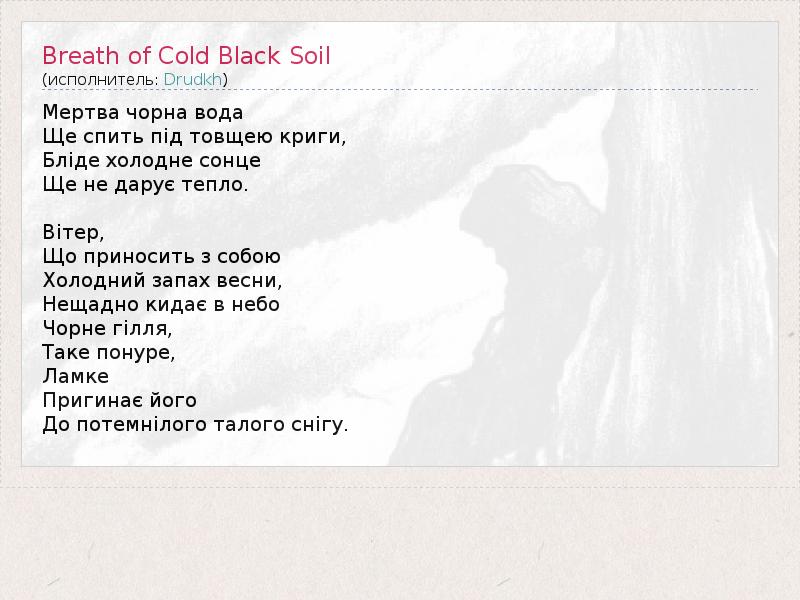 А как ты думаешь, о чем песня "Breath of Cold Black Soil" ?