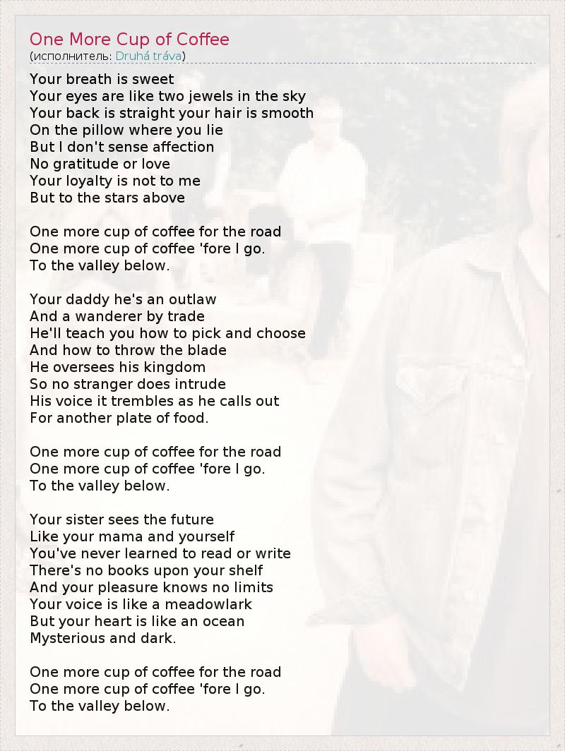 А как ты думаешь, о чем песня "One More Cup of Coffee" ?