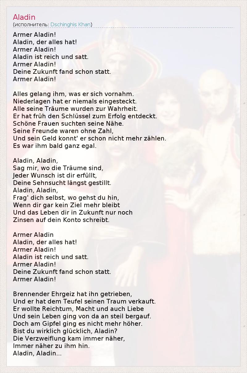 А как ты думаешь, о чем песня "Aladin" ?