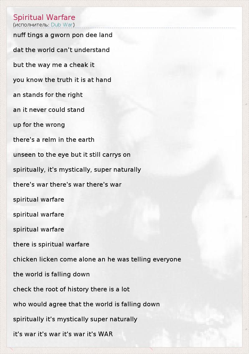 А как ты думаешь, о чем песня "Spiritual Warfare" ?