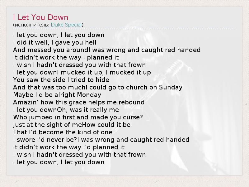 А как ты думаешь, о чем песня "I Let You Down" ?