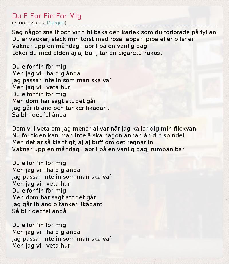 А как ты думаешь, о чем песня "Du E For Fin For Mig" ?