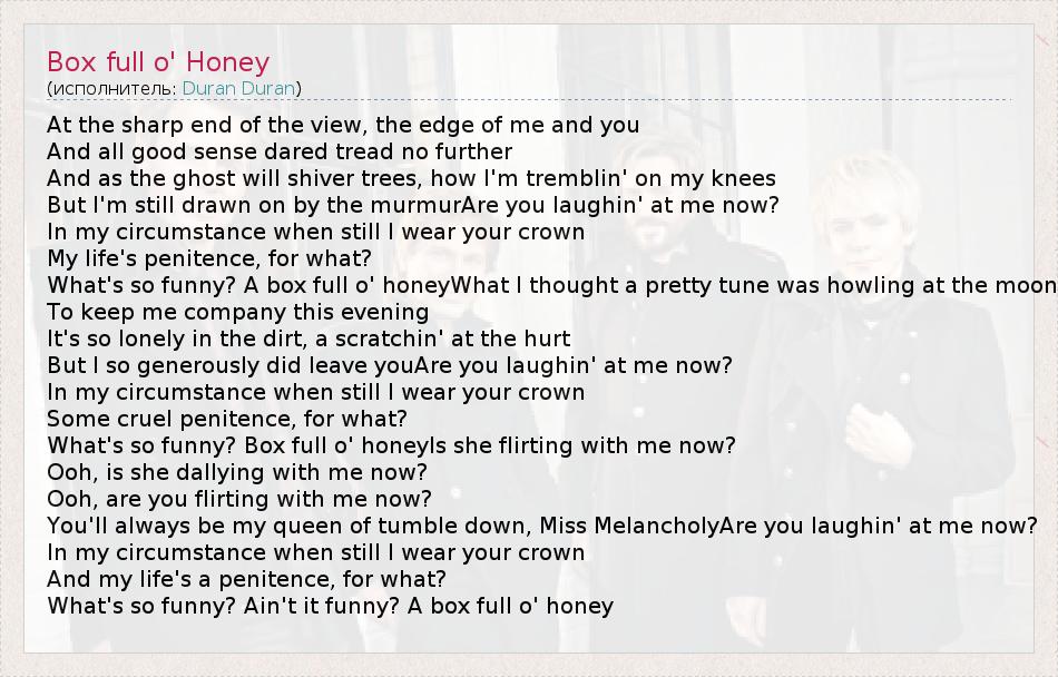А как ты думаешь, о чем песня "Box full o' Honey" ?