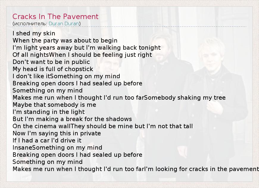 А как ты думаешь, о чем песня "Cracks In The Pavement" ?
