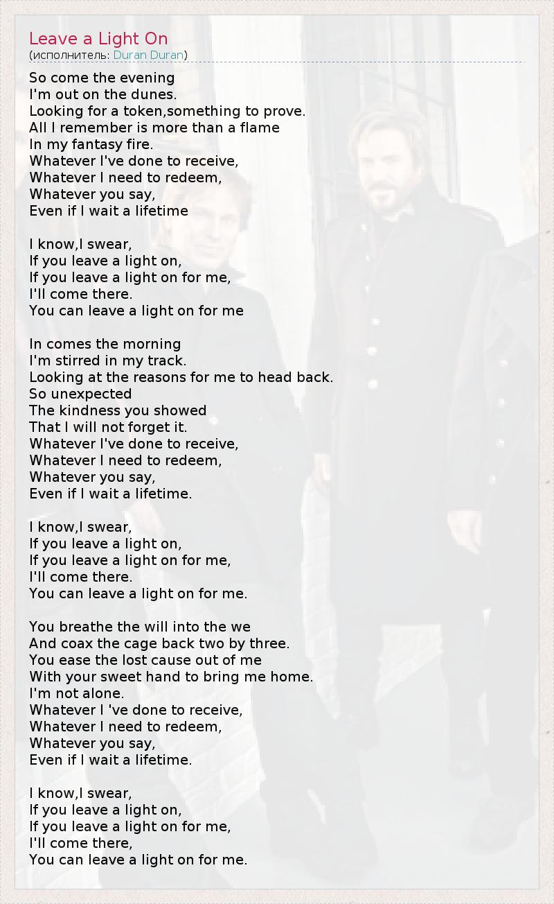 А как ты думаешь, о чем песня "Leave a Light On" ?