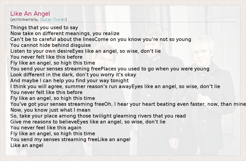 А как ты думаешь, о чем песня "Like An Angel" ?