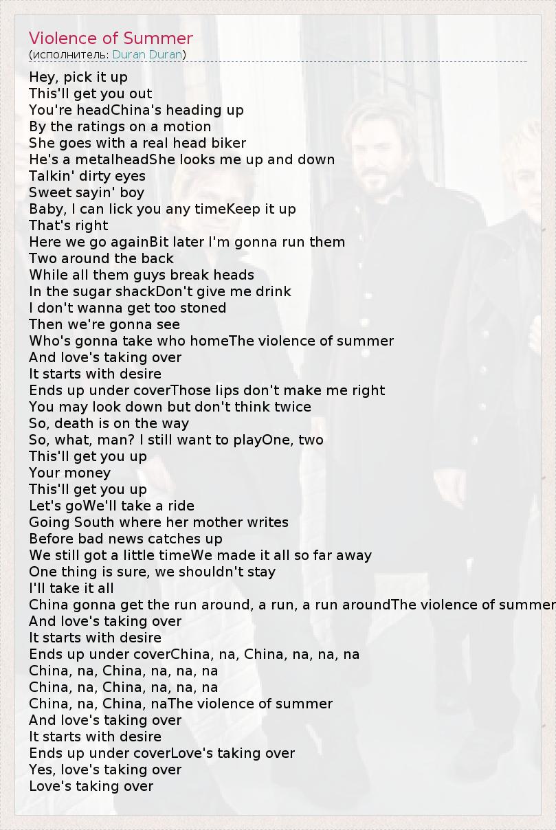 А как ты думаешь, о чем песня "Violence of Summer" ?