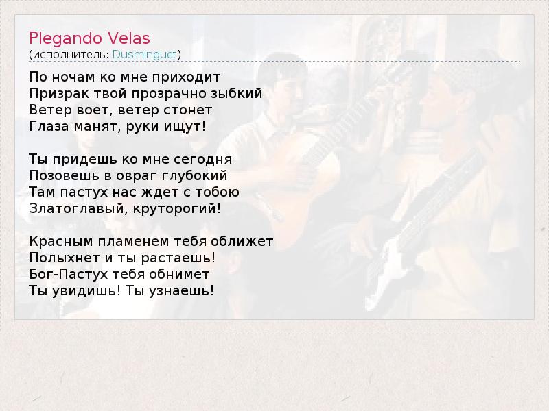 А как ты думаешь, о чем песня "Plegando Velas" ?