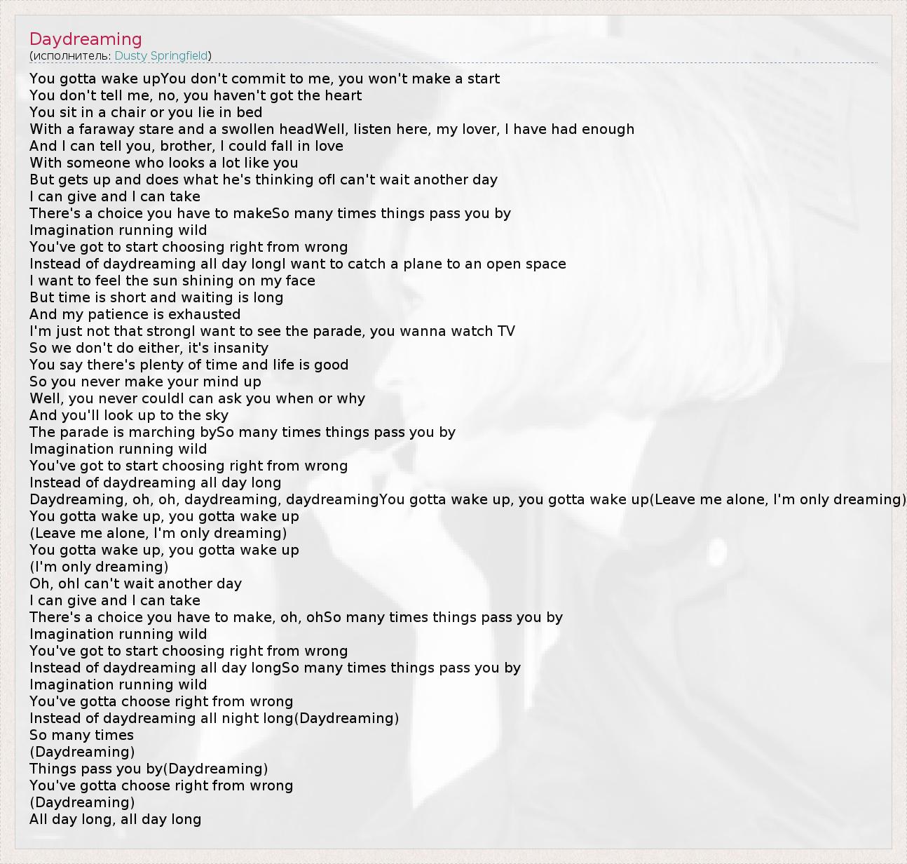 А как ты думаешь, о чем песня "Daydreaming" ?
