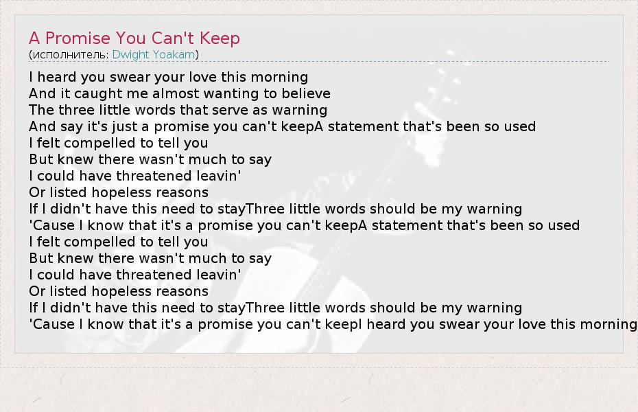А как ты думаешь, о чем песня "A Promise You Can't Keep" ?