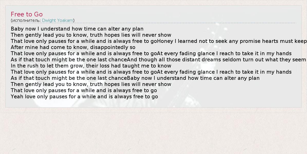 А как ты думаешь, о чем песня "Free to Go" ?