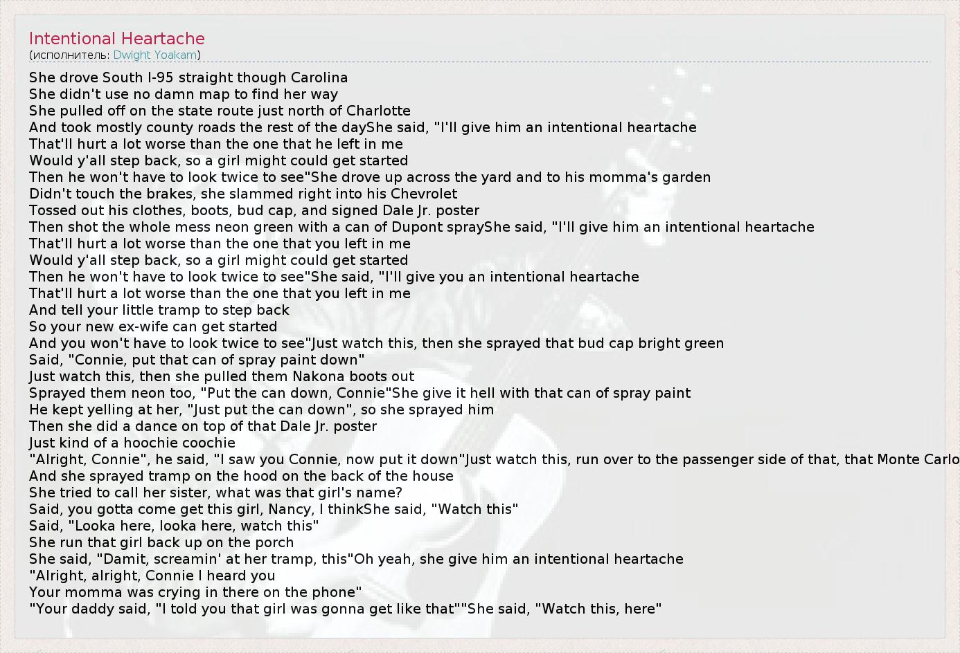 А как ты думаешь, о чем песня "Intentional Heartache" ?