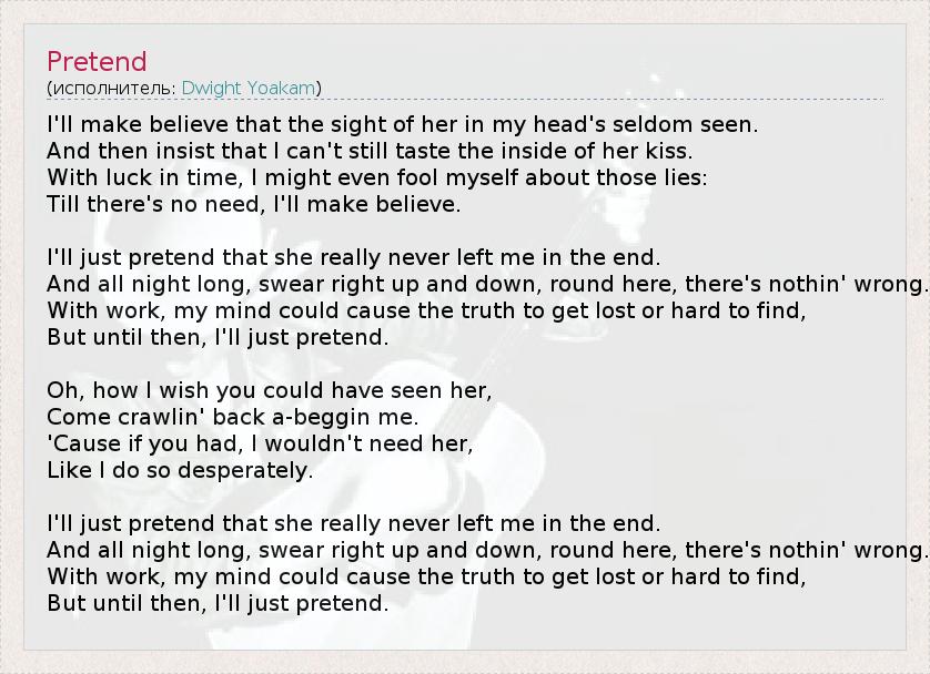 А как ты думаешь, о чем песня "Pretend" ?
