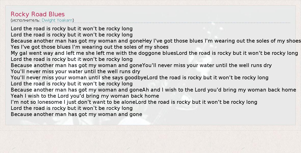 А как ты думаешь, о чем песня "Rocky Road Blues" ?