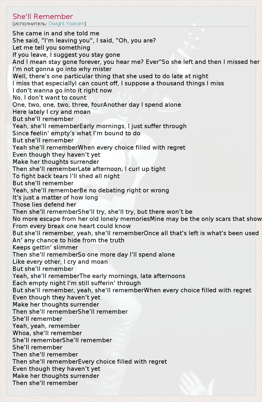 А как ты думаешь, о чем песня "She'll Remember" ?