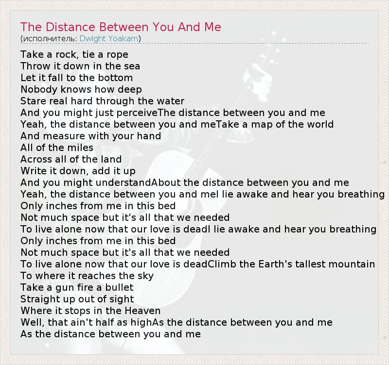 А как ты думаешь, о чем песня "The Distance Between You And Me" ?