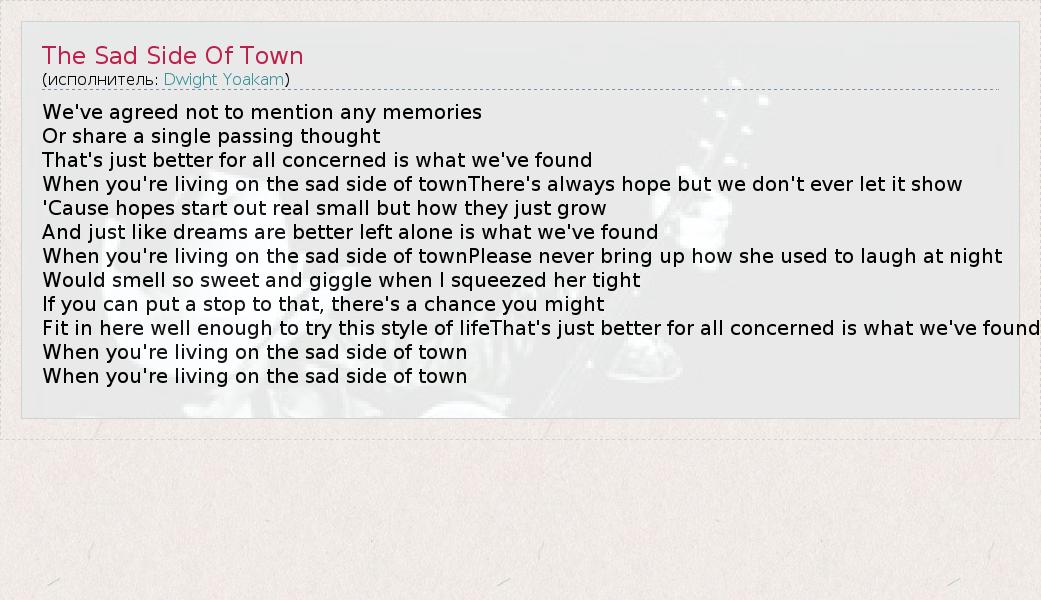 А как ты думаешь, о чем песня "The Sad Side Of Town" ?