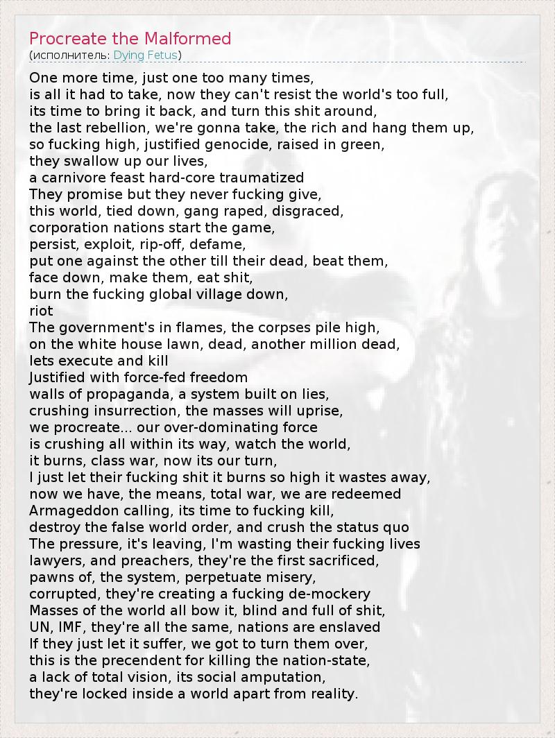 А как ты думаешь, о чем песня "Procreate the Malformed" ?