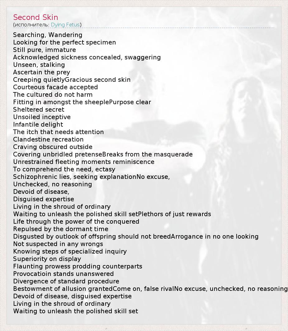 А как ты думаешь, о чем песня "Second Skin" ?