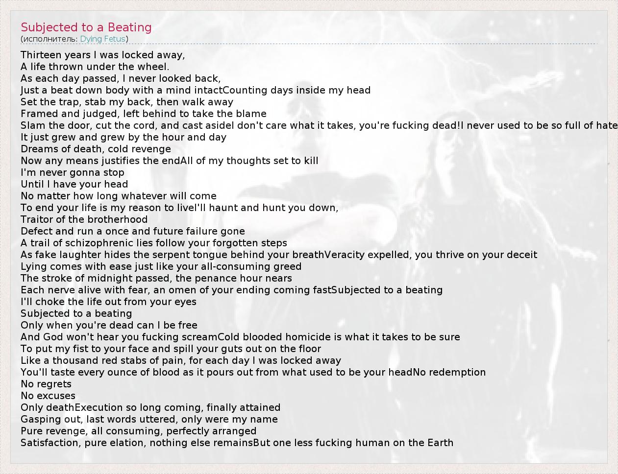 А как ты думаешь, о чем песня "Subjected to a Beating" ?