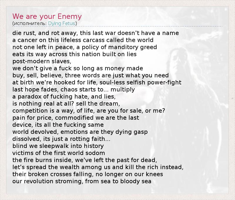 А как ты думаешь, о чем песня "We are your Enemy" ?