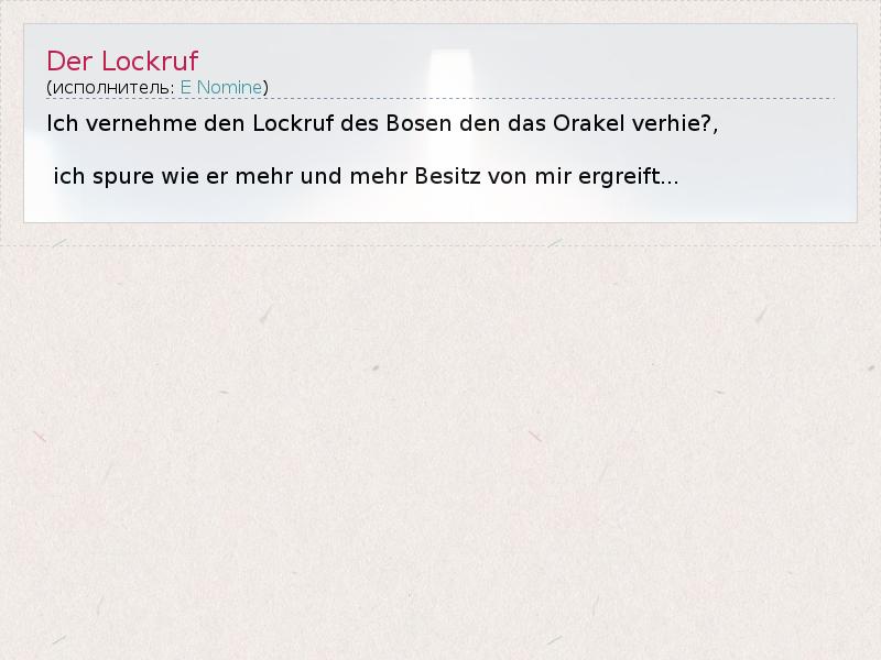 А как ты думаешь, о чем песня "Der Lockruf" ?