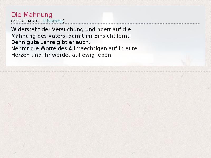 А как ты думаешь, о чем песня "Die Mahnung" ?