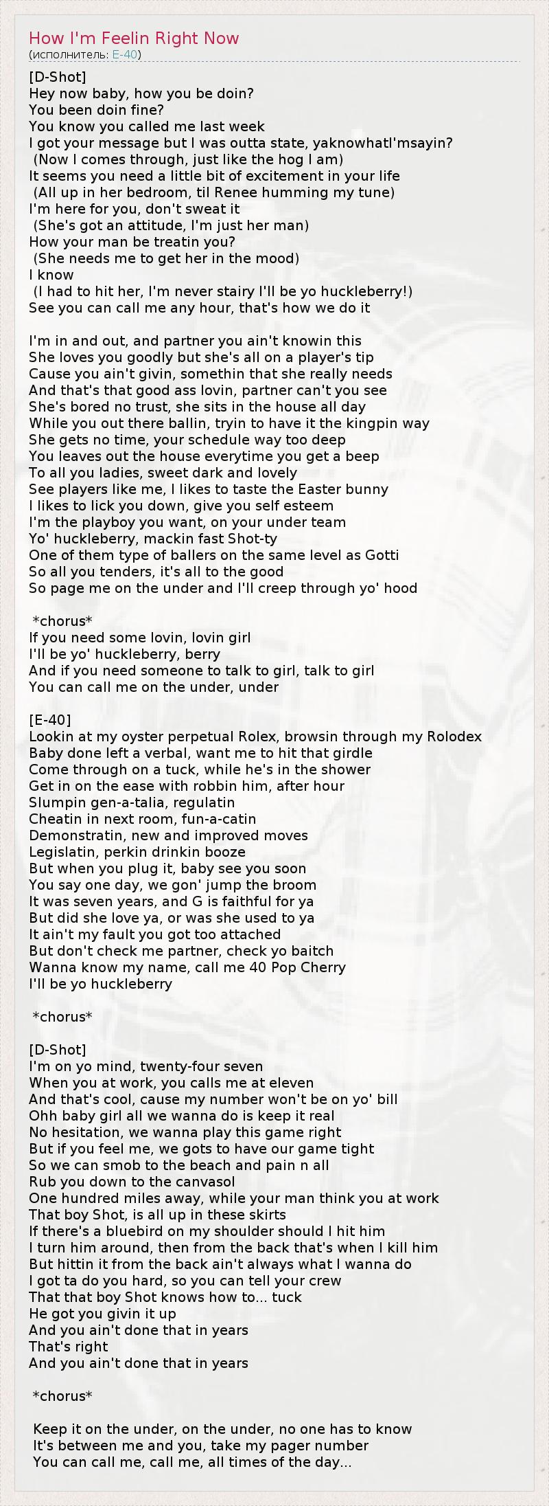 ГлавнаяИсполнителиE-40How I'm Feelin Right Now