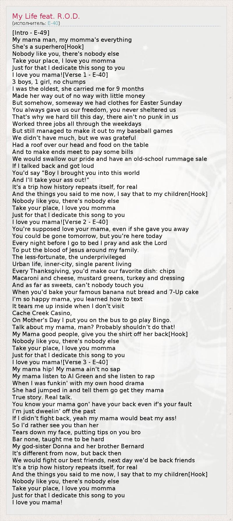 ГлавнаяИсполнителиE-40My Life feat. R.O.D.
