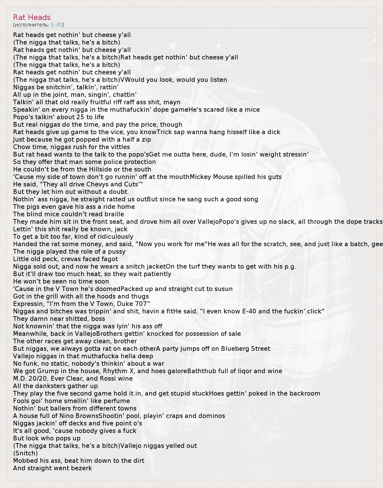 А как ты думаешь, о чем песня "Rat Heads" ?