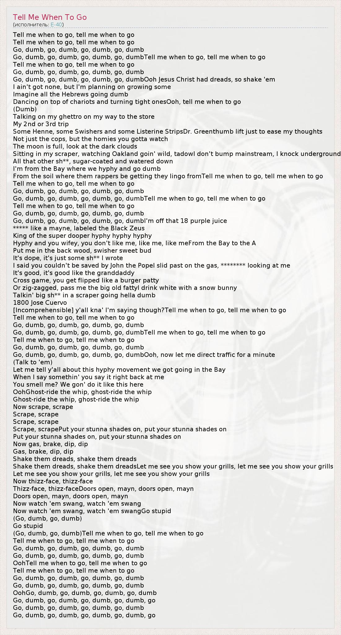 ГлавнаяИсполнителиE-40Tell Me When To Go
