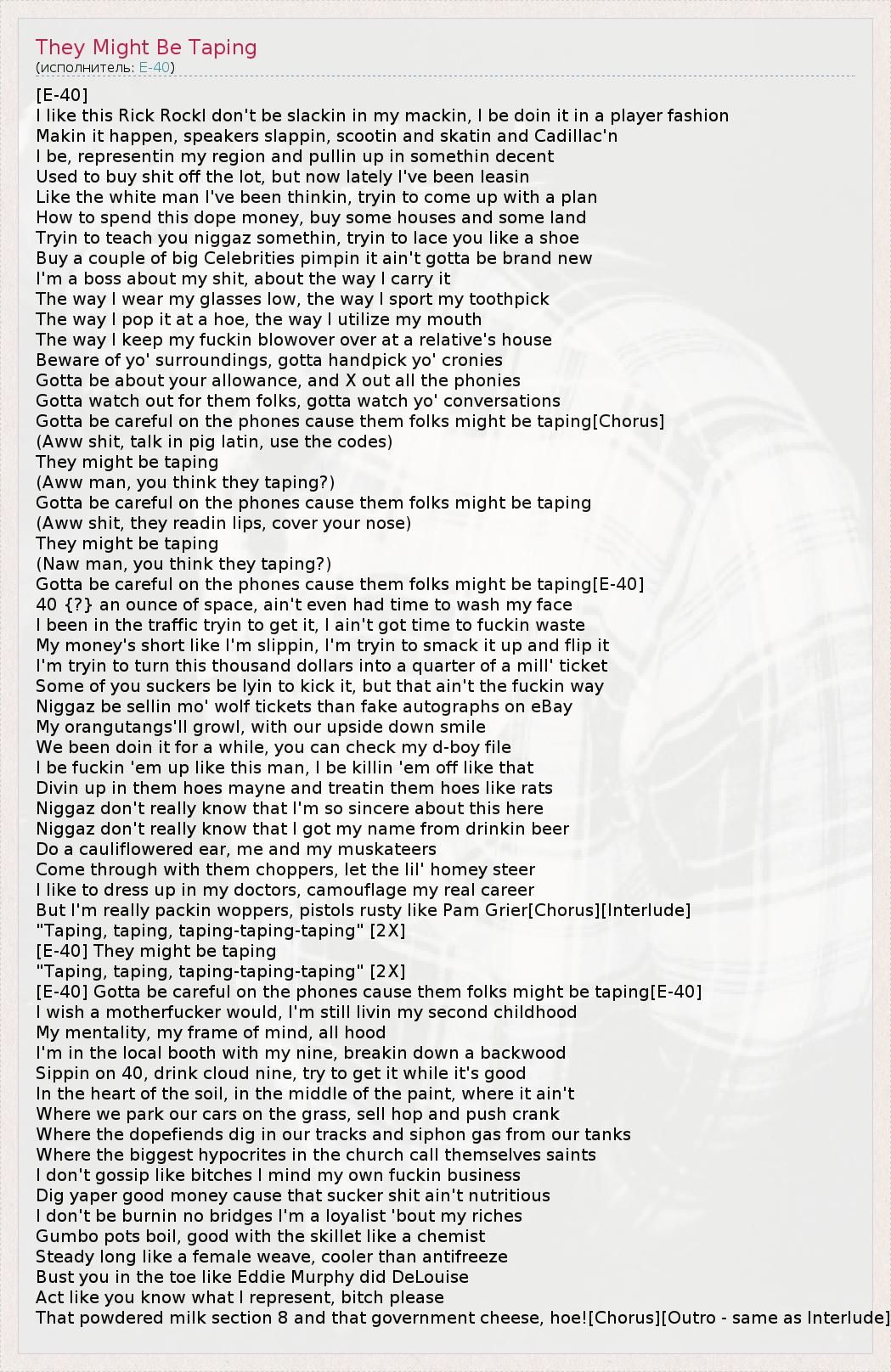 ГлавнаяИсполнителиE-40They Might Be Taping