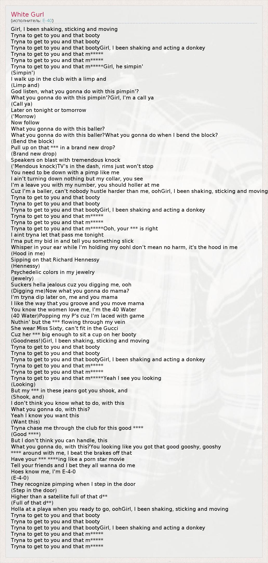 А как ты думаешь, о чем песня "White Gurl" ?