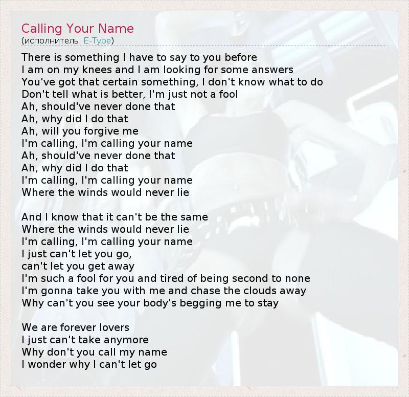 А как ты думаешь, о чем песня "Calling Your Name" ?