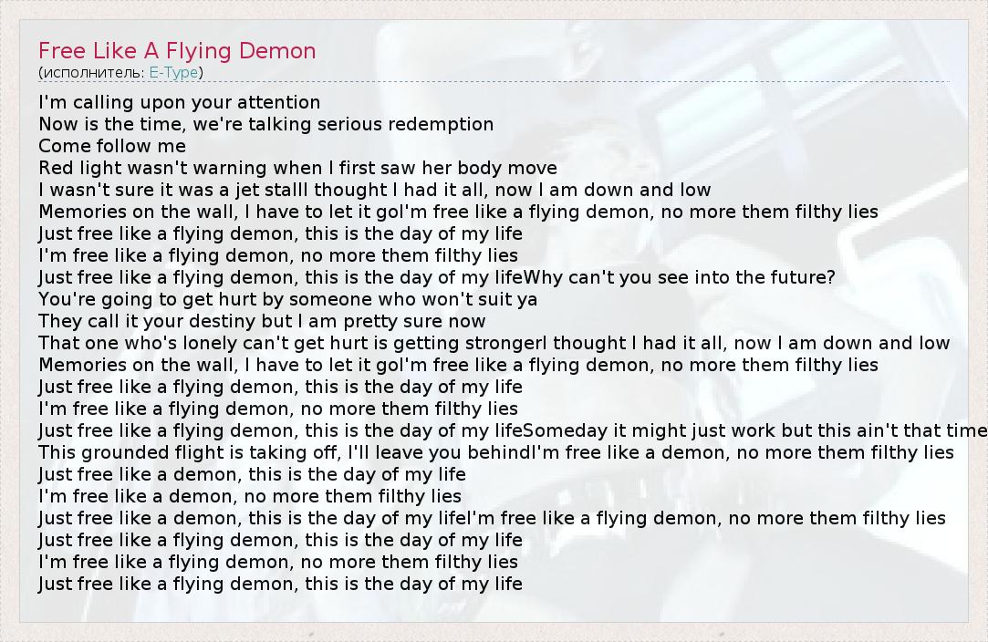 А как ты думаешь, о чем песня "Free Like A Flying Demon" ?