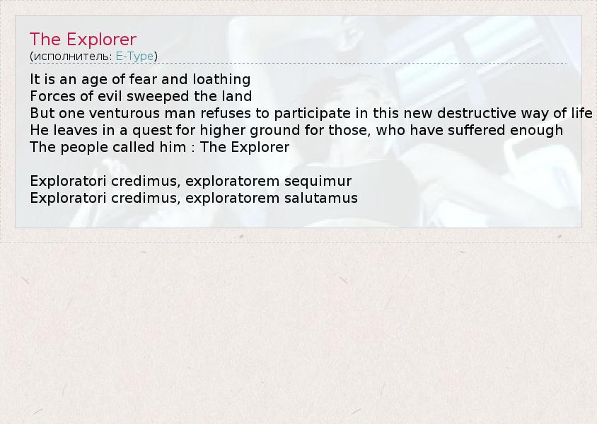 А как ты думаешь, о чем песня "The Explorer" ?