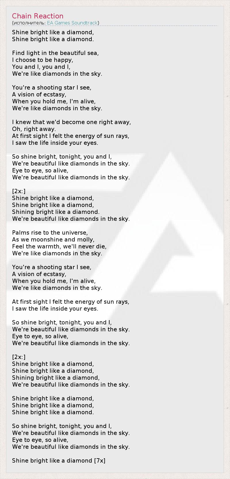 А как ты думаешь, о чем песня "Chain Reaction" ?