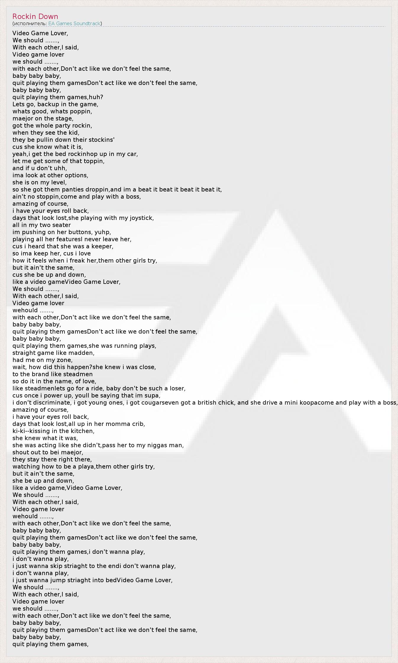 А как ты думаешь, о чем песня "Rockin Down" ?
