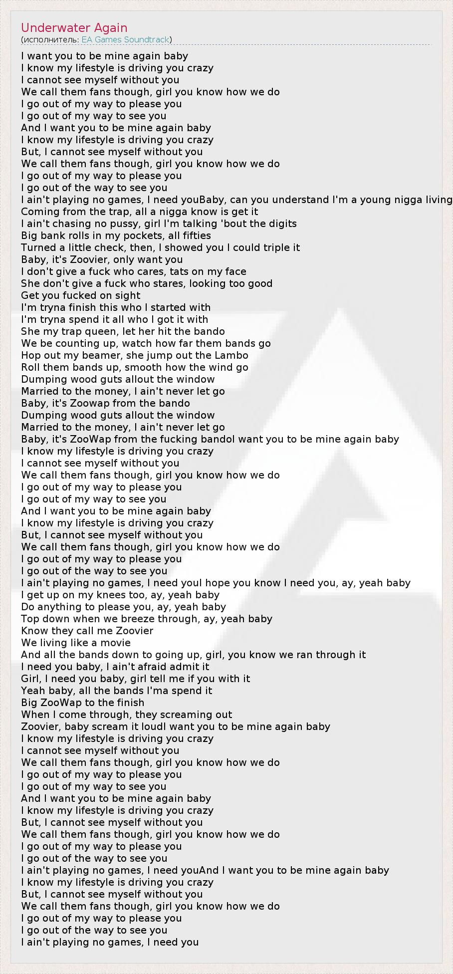 Baby, it's ZooWap from the fucking bandoI want you to be mine again baby