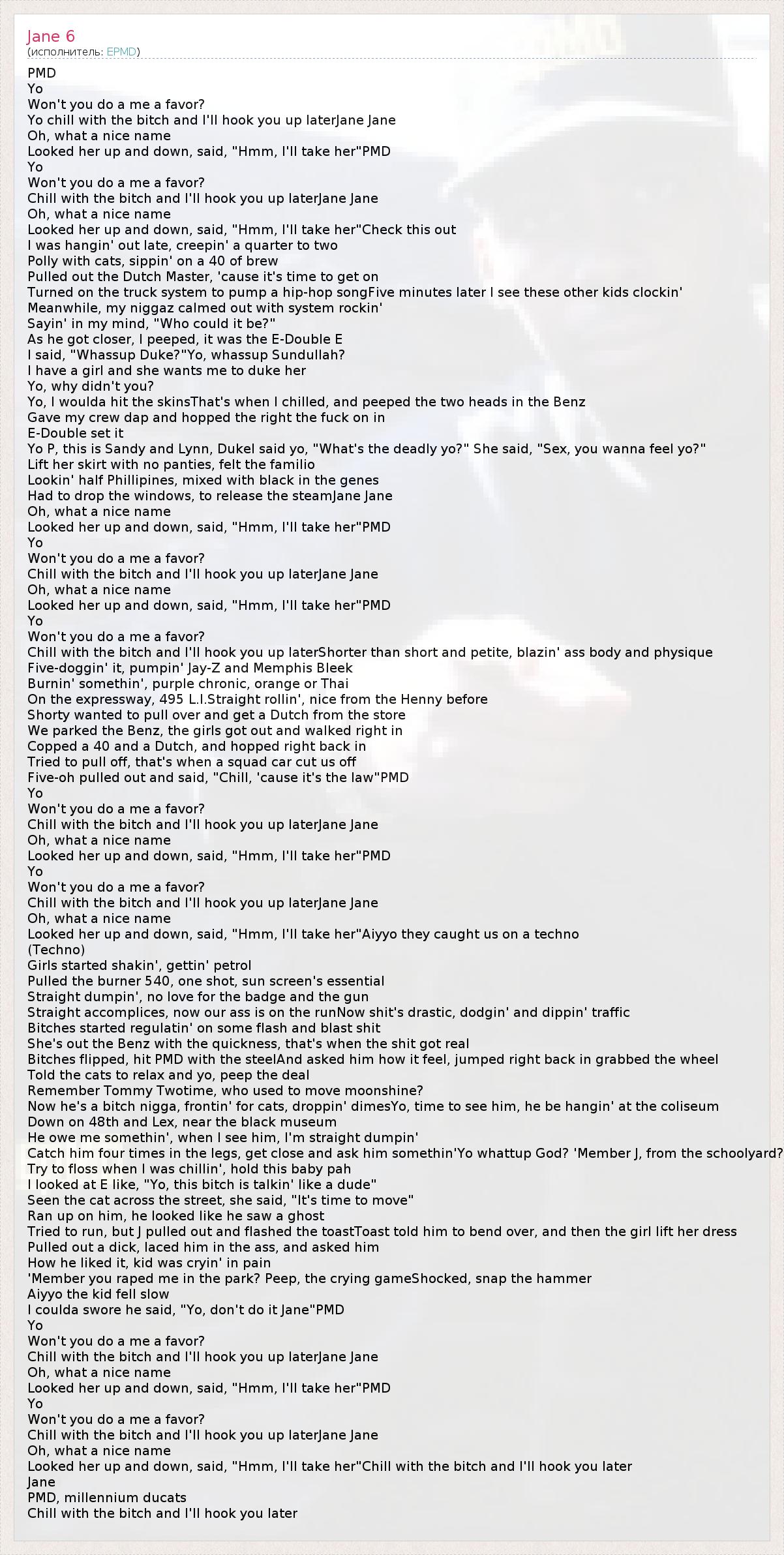 А как ты думаешь, о чем песня "Jane 6" ?