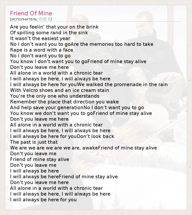 А как ты думаешь, о чем песня "Friend Of Mine" ?
